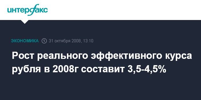 Рост реального эффективного курса рубля в 2008г составит 3,5-4,5%