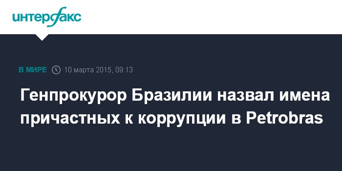 Как сообщалось, в декабре 2014 года прокуратура Бразилии предъявила обвинения в коррупции и отмывании денег ряду топ-менеджеров шести крупнейших в стране строительных компаний, выполнявших подряды Petrobras, и другим подследственным. Всех их также подозревают в картельном сговоре, в результате которого Petrobras платил "откаты" бразильским политикам по контрактам общей стоимостью свыше $4 млрд. В случае обвинительного приговора каждому из них грозит тюремный срок более чем на 20 лет.