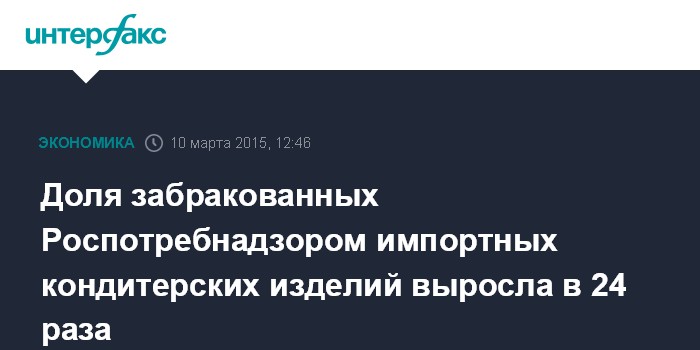 "За 2014 год в четыре раза вырос объем забракованного молока и молочной продукции, выработанной за рубежами нашей родины. По импортной рыбе вырос объем забракованной продукции в 1,5 раза. По плодоовощной продукции - в три, по плодам и ягодам - в 12, по кондитерским изделиям - в 24 раза. Если в 2013 году мы забраковали 2 тыс. 231 кг (кондитерских изделий - ИФ), то в 2014 это уже было 54 тыс. 59 кг", - заявила Попова на пресс-конференции в центральном офисе "Интерфакса" во вторник.