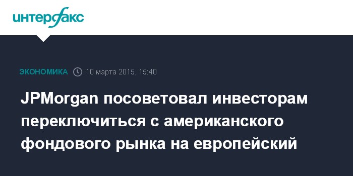 Москва. 10 марта. INTERFAX.RU – Европейский фондовый рынок имеет более благоприятные перспективы в 2015 году, чем рынок акций США, полагает аналитик JPMorgan Мислав Матейка.