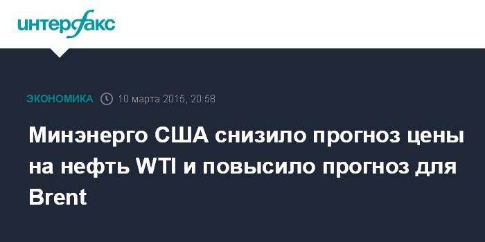 Москва. 10 марта. INTERFAX.RU – Управление по информации в области энергетики (EIA) министерства энергетики США снизило прогнозы цен на нефть марки WTI на текущий и следующий годы из-за сохранения высоких объемов производства.