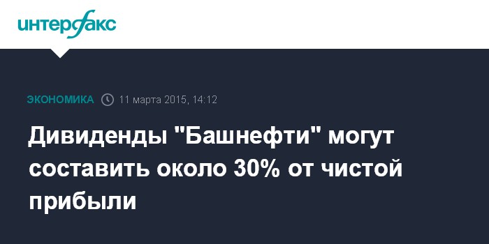 Москва. 11 марта. INTERFAX.RU – "Башнефть" в 2014 году могут направить на дивиденды не стандартные 25% от чистой прибыли, а 30%, заявил первый заместитель министра энергетики РФ Алексей Текслер, который вошел в совет директоров нефтекомпании.