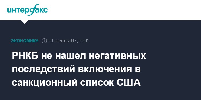 РНКБ не нашел негативных последствий включения в санкционный список США