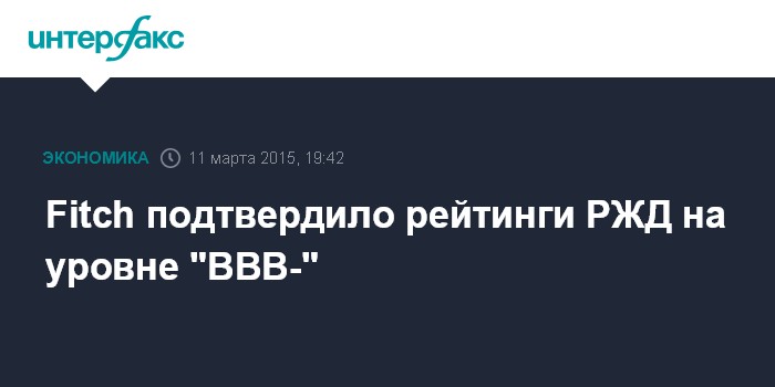 Москва. 11 марта. INTERFAX.RU - Международное рейтинговое агентство Fitch подтвердило долгосрочные рейтинги дефолта эмитента (РДЭ) ОАО "Российские железные дороги"(РЖД) в национальной и иностранной валютах на уровне "BBB-" с "негативным" прогнозом, сообщается в пресс-релизе агентства.