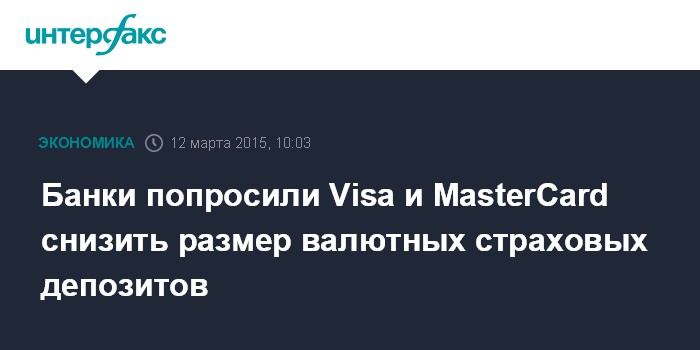 Москва. 12 марта. INTERFAX.RU – Российские банки в январе-феврале начали обращаться в международные платежные системы Visa и MasterCard с просьбой вернуть часть страховых депозитов в иностранных банках в связи с обесценением рубля, пишет газета "Коммерсантъ" со ссылкой на источники на рынке.