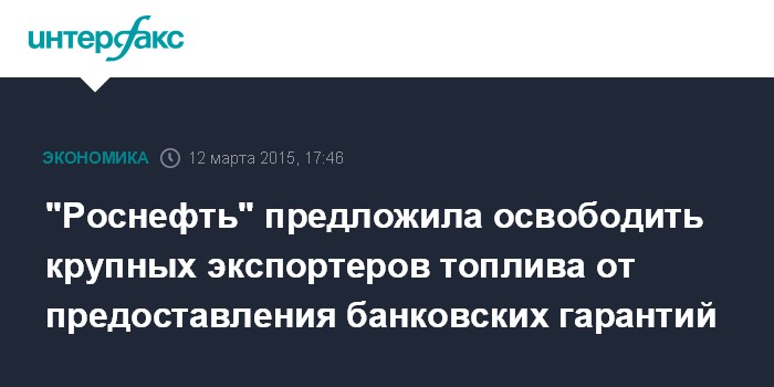 В своем письме "Роснефть" отмечает, что в текущих экономических условиях российские банки существенно сократили лимиты по документарным операциям и значительно повысили вознаграждения за банковские гарантии. Из-за этого компании-экспортеры вынуждены увеличивать затраты на получение банковских гарантий.