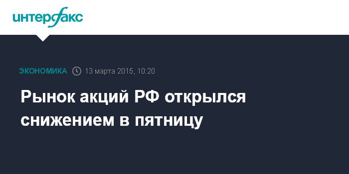 Москва. 13 марта. INTERFAX.RU – Рынок акций РФ открылся в пятницу смешанной динамикой рублевых цен blue chips на фоне ослабления рубля, слабой нефти и улучшения внешней фондовой конъюнктуры, индексы ММВБ и РТС за минуту торгов просели на 0,2-0,6%.