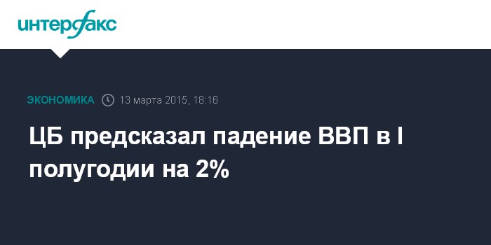 Москва. 13 марта. INTERFAX.RU - ВВП РФ в первом полугодии 2015 года упадет примерно на 2%, прогнозирует Банк России.