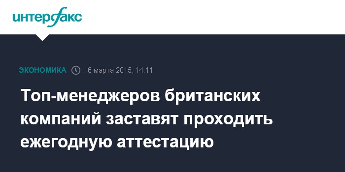 Москва. 16 марта. INTERFAX.RU – Британское Управление по контролю за соблюдением норм поведения на финансовых рынках (FCA) хочет ввести требование о ежегодной аттестации и сертификации топ-менеджеров, "способных причинить серьезный вред" своим компаниям, их клиентам и рынку в целом, говорится в обнародованном в понедельник заявлении регулятора.