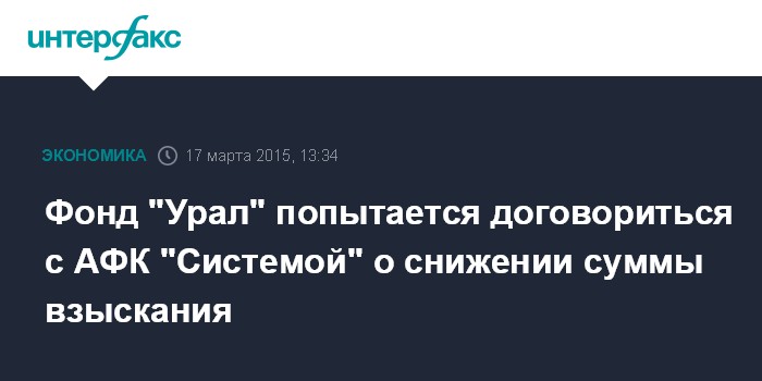 Фонд "Урал" попытается договориться с АФК "Системой" о снижении суммы взыскания