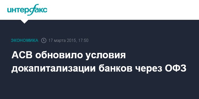 Москва. 17 марта. INTERFAX.RU – Совет директоров Агентства по страхованию вкладов дополнил список приоритетных секторов кредитования для банков, получающих капитал через ОФЗ, субъектами РФ, следует из обновленных условий получения госсредств на сайте АСВ.