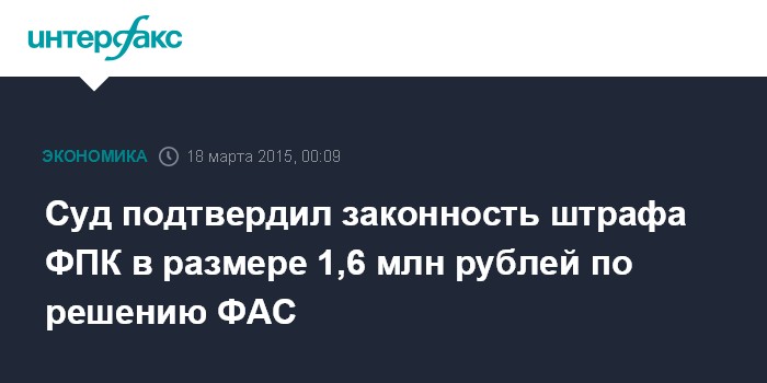 Суд подтвердил законность штрафа ФПК в размере 1,6 млн рублей по решению ФАС