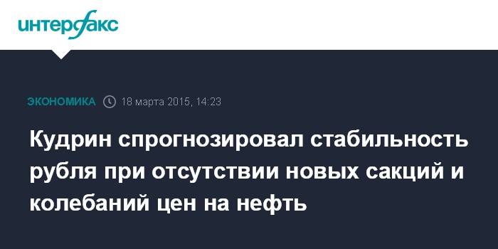 Москва. 18 марта. INTERFAX.RU - Курс рубля в нынешнем году останется стабильным, если в отношении России не будут усилены санкции и сохранится цена на нефть, считает бывший министр финансов РФ Алексей Кудрин.