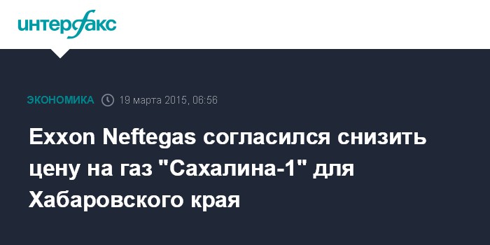 Москва. 19 марта. INTERFAX.RU - Exxon Neftegas Ltd (оператор проекта "Сахалин-1") заключил с ОАО "Дальневосточная генерирующая компания" (ДГК, входит в холдинг "РАО ЭС Востока") договор о применении понижающего коэффициента к цене на поставляемый в Хабаровский край с Сахалина природный газ, такой же договор готовится с АО "Хабаровсккрайгаз", сообщил замгубернатора по вопросам ТЭК и ЖКХ Анатолий Литвинчук.