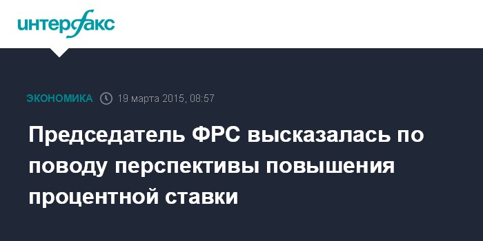 Москва. 19 марта. INTERFAX.RU - Председатель Федеральной резервной системы (ФРС) Джанет Йеллен на пресс-конференции по итогам мартовского заседания центробанка дала понять, что повышение процентных ставок произойдет лишь после того, как Федрезерв будет полностью к нему готов.