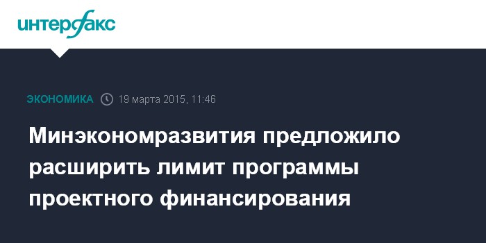 Москва. 19 марта. INTERFAX.RU – Глава Минэкономразвития Алексей Улюкаев выступает за увеличение лимита в рамках программы проектного финансирования до тех пор, пока ключевая ставка и ставки на рынке не снизятся до уровня, который позволяет активно кредитовать.