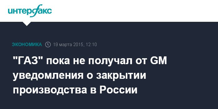 "В связи с объявлением компании General Motors в СМИ о досрочном прекращении контрактной сборки на автозаводе "ГАЗ" в 2015 году группа "ГАЗ" сообщает, что не получала официального уведомления от GM о вероятности досрочного прекращения проекта. На данный момент на Горьковском автозаводе продолжается выполнение производственной программы по выпуску автомобилей Chevrolet Aveo в рамках контракта, который заключен между группой "ГАЗ" и компанией General Motors до конца 2016 года и предполагает выполнение финансовых обязательств американского партнера в течение всего срока действия контракта", - говорится в заявлении группы "ГАЗ".