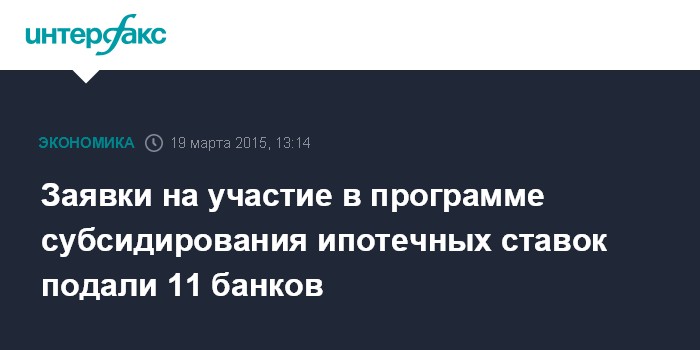 Сбербанк сообщил, что начал принимать заявки на выдачу ипотечных кредитов с государственной поддержкой под 12% годовых. В рамках программы субсидирования ипотеки Сбербанк планирует выдать 200 млрд рублей до 1 марта 2016 года. В ВТБ также заявили, что группа готова приступить к выдаче ипотеки по новой субсидированной ставке 12%, ранее ВТБ 24 сообщил, что может выдать таких кредитов на 100 млрд рублей. О своем участии в программе субсидирования ипотеки также сообщили Газпромбанк, который предлагает ставку 11,5%, и банк "ХМБ Открытие".