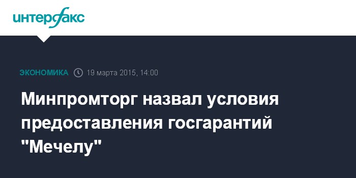 Минпромторг назвал условия предоставления госгарантий "Мечелу"