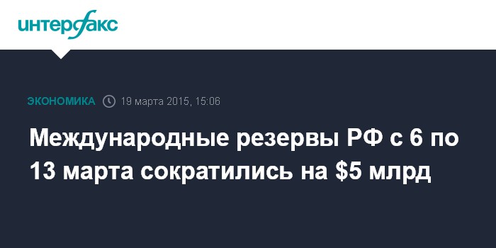 По состоянию на 6 марта международные резервы равнялась $356,7 млрд. Таким образом, за неделю они уменьшились на $5 млрд.