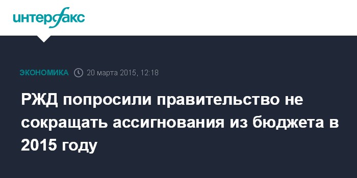 Москва. 20 марта. INTERFAX.RU – РЖД просит транспортные ведомства не допустить сокращения ассигнований из федерального бюджета на 2015 год.