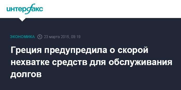 Греция предупредила о скорой нехватке средств для обслуживания долгов