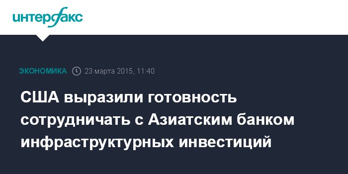 США выразили готовность сотрудничать с Азиатским банком инфраструктурных инвестиций