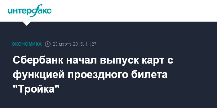 Москва. 23 марта. INTERFAX.RU – Сбербанк приступил к выпуску карт MasterCard Standard с функцией проездного билета "Тройка" и бесконтактной технологией оплаты MasterCard PayPass. Проект реализован совместно с департаментом транспорта Москвы и ГУП "Московский метрополитен", говорится в сообщении банка.
