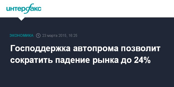 Москва. 23 марта. INTERFAX.RU – Принятые решения по поддержке российского автопрома позволят сократить падение рынка до 24%, заявил министр промышленности и торговли Денис Мантуров на пресс-конференции по итогам совещания у председателя правительства.