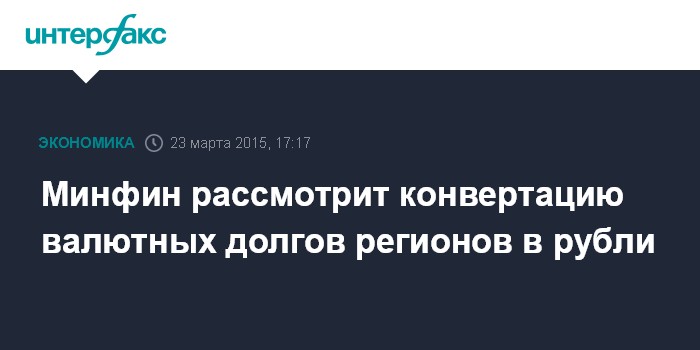 Минфин готов рассмотреть предложение пересчитать валютный долг регионов в рубли по среднегодовому курсу за 2014 год, не меняя сроки погашения задолженности, которые составляли порядка 30 лет, заявил он.