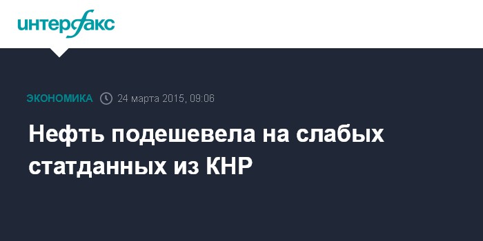 Москва. 24 марта. INTERFAX.RU - Нефть дешевеет во вторник на слабых статданных из Китая, сообщает агентство Bloomberg.