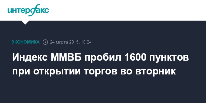 Индекс ММВБ пробил 1600 пунктов при открытии торгов во вторник
