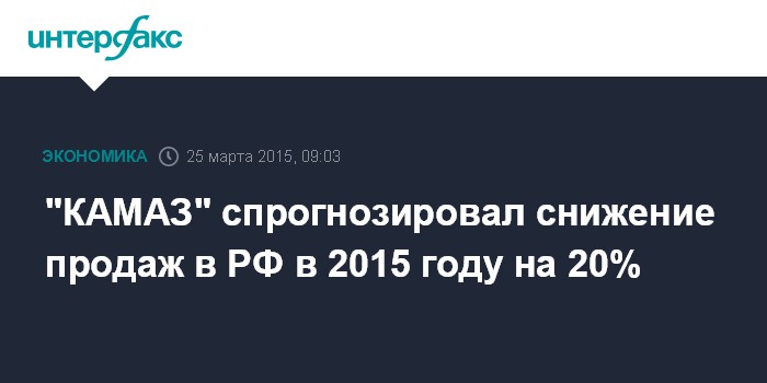 Москва. 25 марта. INTERFAX.RU - ОАО "КАМАЗ" предполагает реализовать в России в 2015 году 26 тыс. грузовиков, что на 20% меньше, чем было реализовано в прошлом году, говорится в сообщении пресс-службы компании.