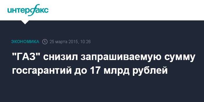 "ГАЗ" снизил запрашиваемую сумму госгарантий до 17 млрд рублей