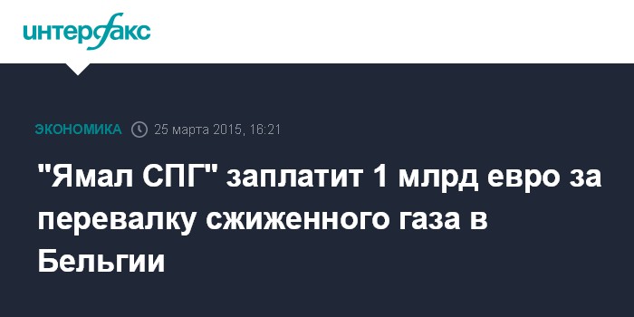 Москва. 25 марта. INTERFAX.RU – "Ямал СПГ" заплатит 1,011 млрд евро бельгийской Fluxys LNG за перевалку сжиженного природного газа в порту Зебрюгге, следует из отчетности российской компании по МСФО. Эти средства будут уплачены в течение 20 лет с даты начала предоставления услуг по перевалке СПГ.
