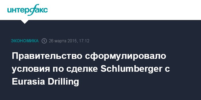 Москва. 26 марта. INTERFAX.RU – Правительство сформулировало условия по покупке Schlumberger акций Eurasia Drilling Company, которые состоят из 10 пунктов, сообщил глава ФАС Игорь Артемьев.