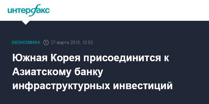 Южная Корея присоединится к Азиатскому банку инфраструктурных инвестиций