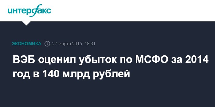 ВЭБ оценил убыток по МСФО за 2014 год в 140 млрд рублей