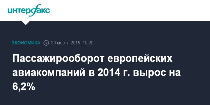Пассажирооборот европейских авиакомпаний в 2014 г. вырос на 6,2%