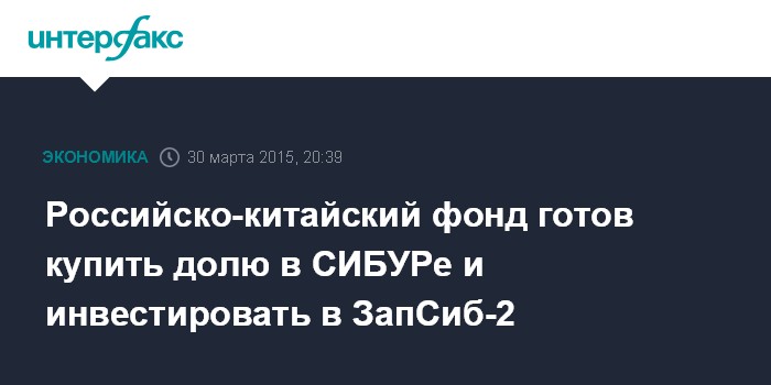 Российско-китайский фонд готов купить долю в СИБУРе и инвестировать в ЗапСиб-2