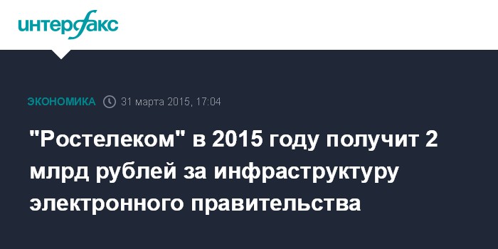 "Ростелеком" в 2015 году получит 2 млрд рублей за инфраструктуру электронного правительства