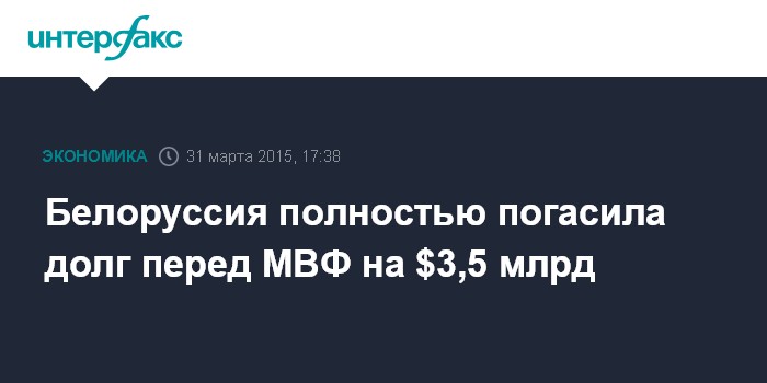 Москва. 31 марта. INTERFAX.RU – Белоруссия осуществила погашение последней части основного долга по кредиту stand-by МВФ, сообщила пресс-служба министерства финансов страны.