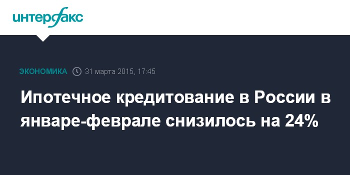 Ипотечное кредитование в России в январе-феврале снизилось на 24%