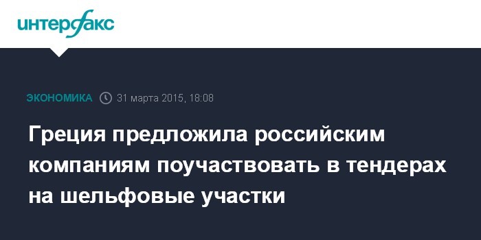 Москва. 31 марта. INTERFAX.RU – Греция предложила российским компаниям принять участие в тендерах на право разведки и разработки участков на шельфе, сообщил "Интерфаксу" источник в Минэнерго.