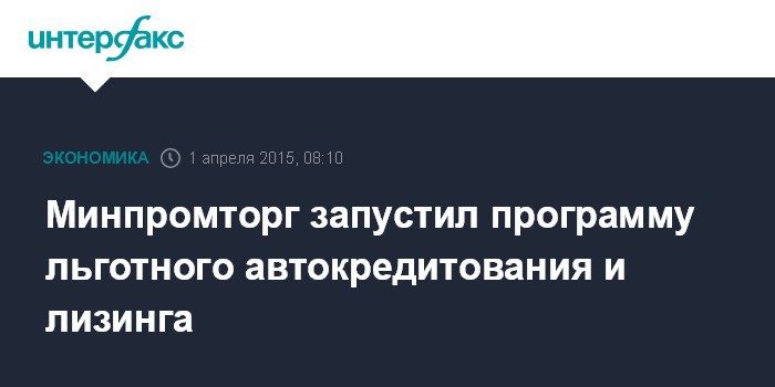 Москва. 1 апреля. INTERFAX.RU – Минпромторг с 1 апреля запускает программу льготного автокредитования. Согласно ранее обнародованным планам, министерство получит 1,5 млрд рублей из федерального бюджета для возмещения выпадающих доходов по кредитам, выданным банками физлицам на приобретение автомобилей.