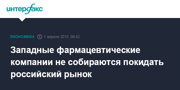 Москва. 1 апреля. INTERFAX.RU - Западные фармацевтические компании не собираются покидать российский рынок. Они оценивают российский рынок как стратегически важный и прилагают все усилия, чтобы сохранить свое присутствие и доли рынка, заявил "Интерфаксу" в среду член совета директоров группы компаний "36,6" Темур Шакая.