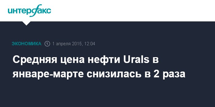 В марте 2015 года средняя цена нефти марки Urals составила $54,53 за баррель,. Это также в 2 раза ниже, чем в марте 2014 года ($106,68 за баррель).