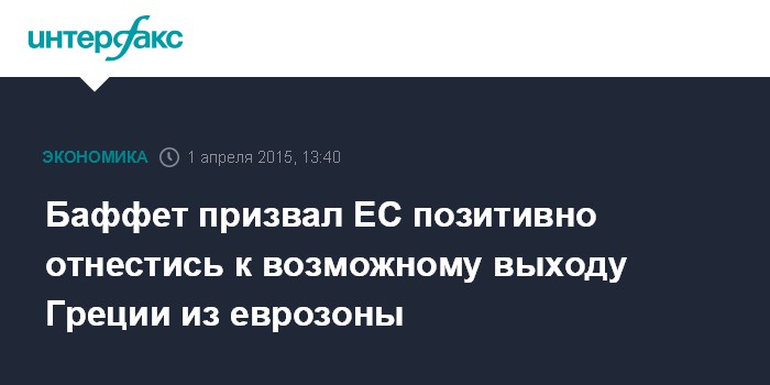 Москва. 1 апреля. INTERFAX.RU – Еврозона сможет без особых проблем пережить выход Греции из валютного блока, полагает миллиардер и инвестор Уоррен Баффет.