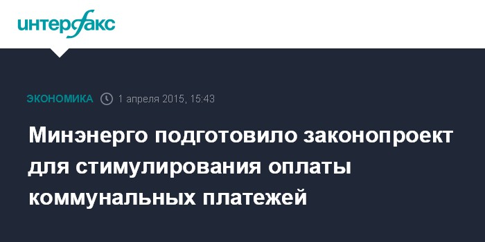 Москва. 1 апреля. INTERFAX.RU – Минэнерго России подготовило законопроект для стимулирования оплаты коммунальных платежей, сообщил глава ведомства Александр Новак на встрече президента Владимира Путина с членами правительства в среду.