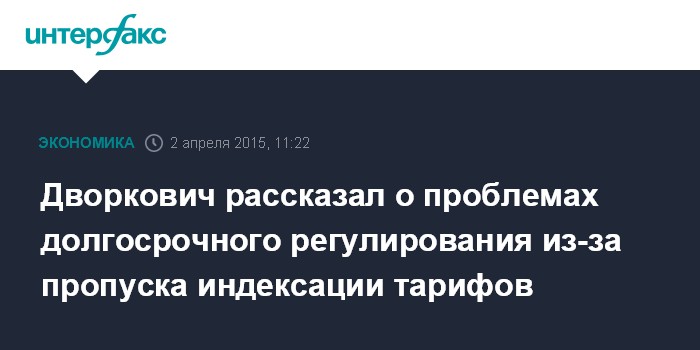 Москва. 2 апреля. INTERFAX.RU – Пропуск индексации тарифов в 2014 году создал проблемы для долгосрочного регулирования, заявил вице-премьер Аркадий Дворкович в ходе выступления на всероссийском совещании Федеральной службы по тарифам в четверг. Проблемы регулирования коснулись и реализации инвестпрограмм самих компаний, отметил он.